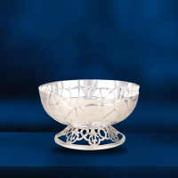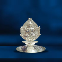 Handcrafted Silver Floral Diya on Engraved Leaf Base