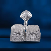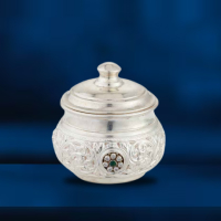 Handcrafted Silver Kumkum Box with Floral Stone Accent