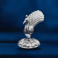 Handcrafted Silver Peacock Figurine on Lotus Base